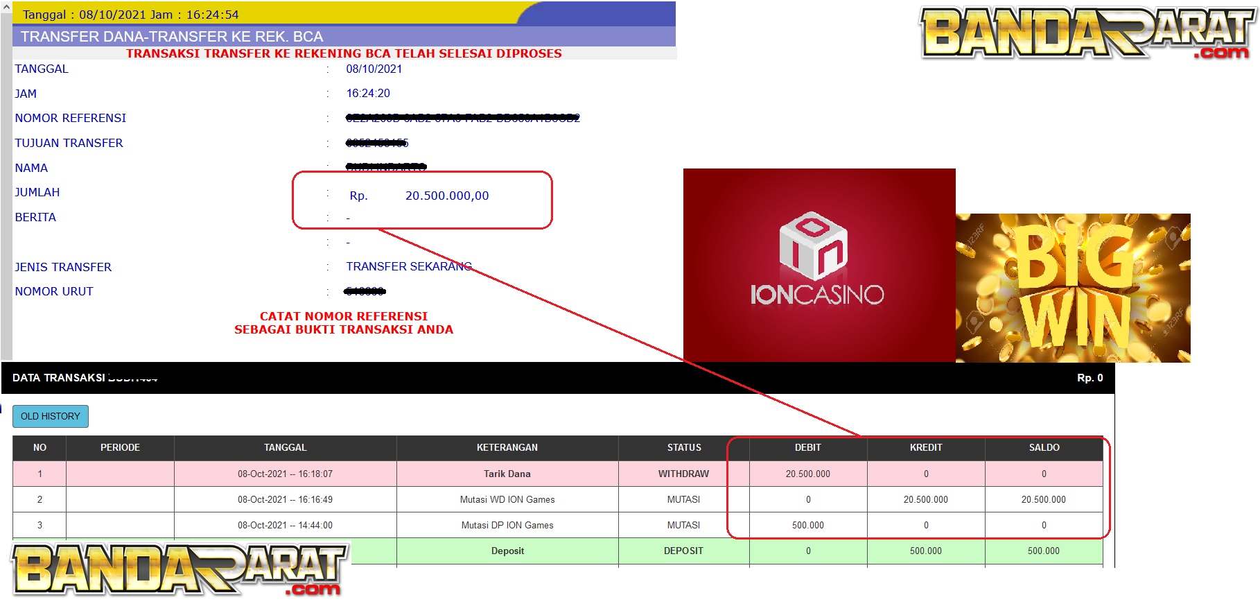 BUKTI PEMBAYARAN YANG SUDAH DI TRANSFER KE REKENING MEMBER DENGAN SUKSES SERTA BUKTI BETTINGANNYA