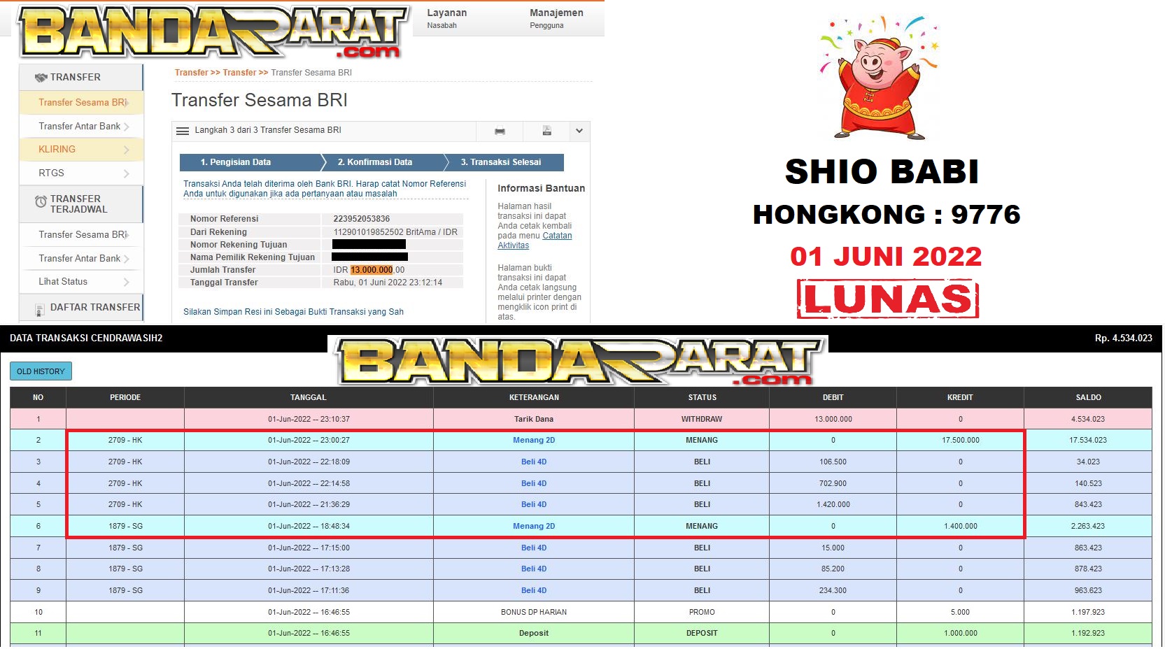 BUKTI PEMBAYARAN YANG SUDAH DI TRANSFER KE REKENING MEMBER DENGAN SUKSES SERTA BUKTI BETTINGANNYA