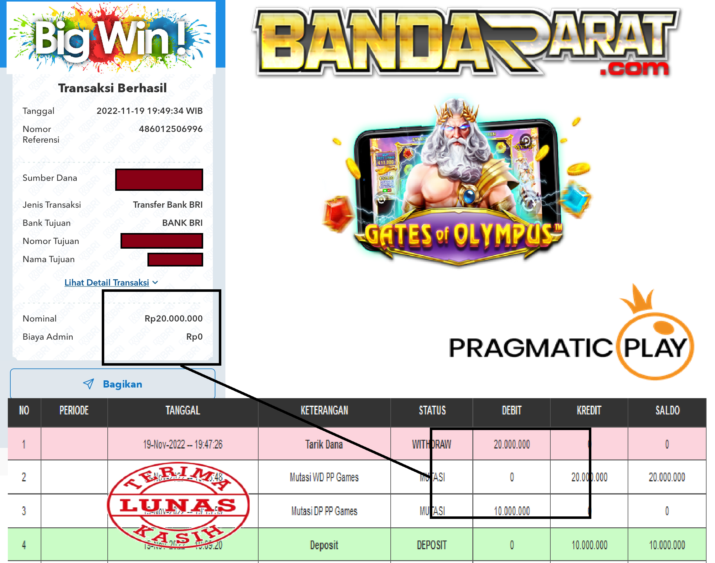 SELAMAT ATAS KEMENANGAN BPK : AP**RI** A*****O01 USER ID : A****07 UNTUK JACKPOT PRAGMATIC PLAY TANGGAL 19 NOVEMBER 2022