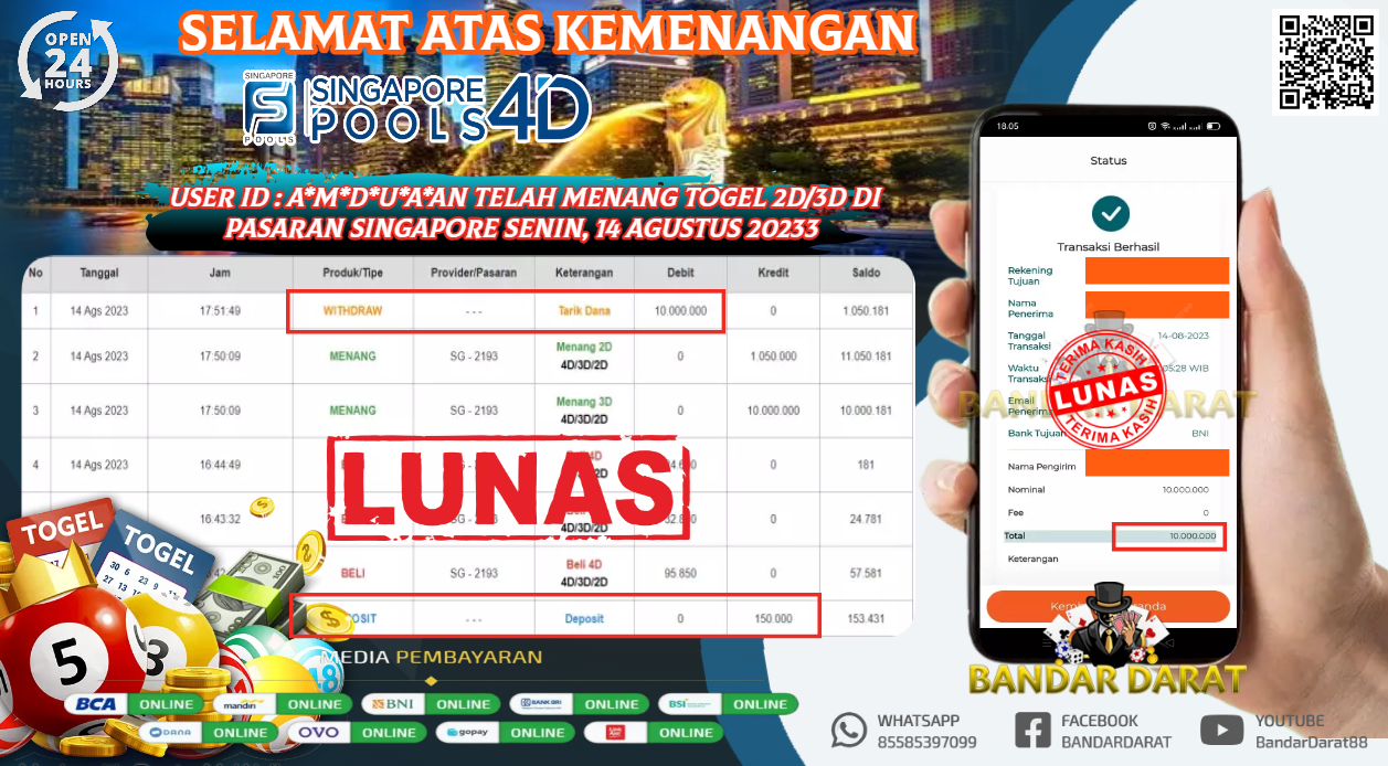 SELAMAT ATAS KEMENANGAN USER ID : A*M*D*U*A*AN TELAH MENANG TOGEL 2D/3D DI PASARAN SINGAPORE SENIN, 14 AGUSTUS 2023