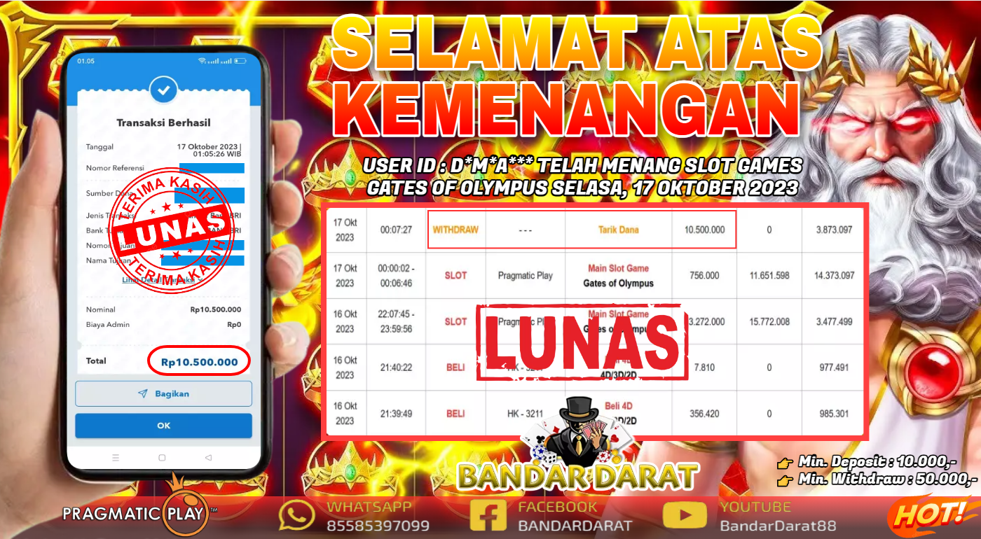 SELAMAT ATAS KEMENANGAN USER ID : D*M*A*** TELAH MENANG SLOT GAMES GATES OF OLYMPUS SELASA, 17 OKTOBER 2023