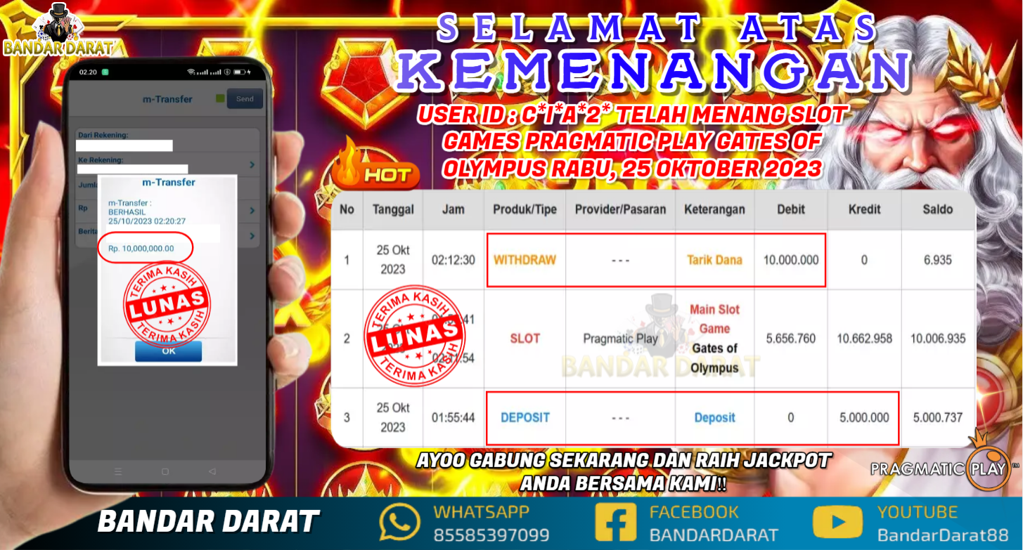 SELAMAT ATAS KEMENANGAN USER ID : C*I*A*2 TELAH MENANG SLOT GAMES PRAGMATIC PLAY GATES OF OLYMPUS RABU, 25 OKTOBER 2023