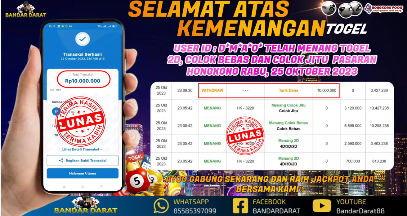 SELAMAT ATAS KEMENANGAN USER ID : D*M*A*0* TELAH MENANG TEBAK ANGKA 2D, COLOK BEBAS DAN COLOK JITU PASARAN HONGKONG RABU, 25 OKTOBER 2023
