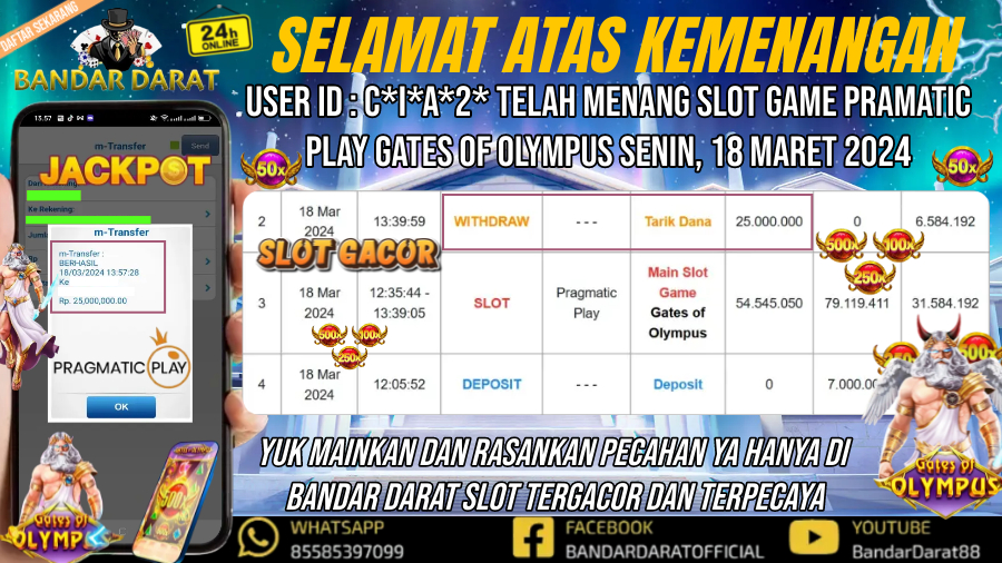 SELAMAT ATAS KEMENANGAN USER ID : C*I*A*2* TELAH MENANG SLOT GAMES PRAGMATIC PLAY GATES OF OLYMPUS SENIN, 18 MARET 2024