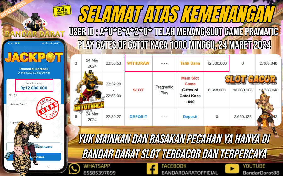 SELAMAT ATAS KEMENANGAN USER ID : A*U*E*A*2*0* TELAH MENANG SLOT GAMES PRAGMATIC PLAY GATES OF GATOT KACA 1000 MINGGU, 24 MARET 2024