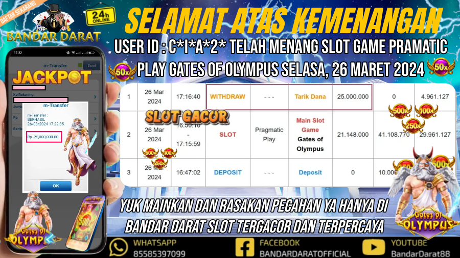 SELAMAT ATAS KEMENANGAN USER ID : C*I*A*2* TELAH MENANG SLOT GAMES PRAGMATIC PLAY GATES OF OLYMPUS SELASA, 26 MARET 2024