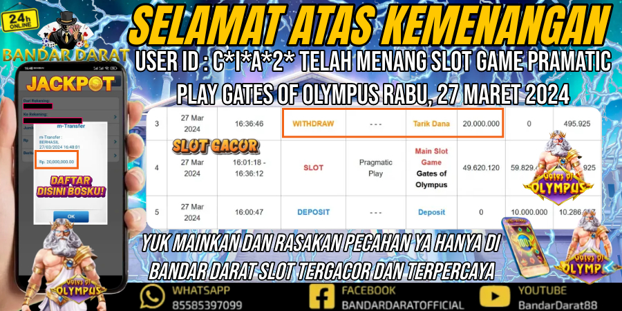 SELAMAT ATAS KEMENANGAN USER ID : C*I*A*2* TELAH MENANG SLOT GAMES PRAGMATIC PLAY GATES OF OLYMPUS RABU, 27 MARET 2024