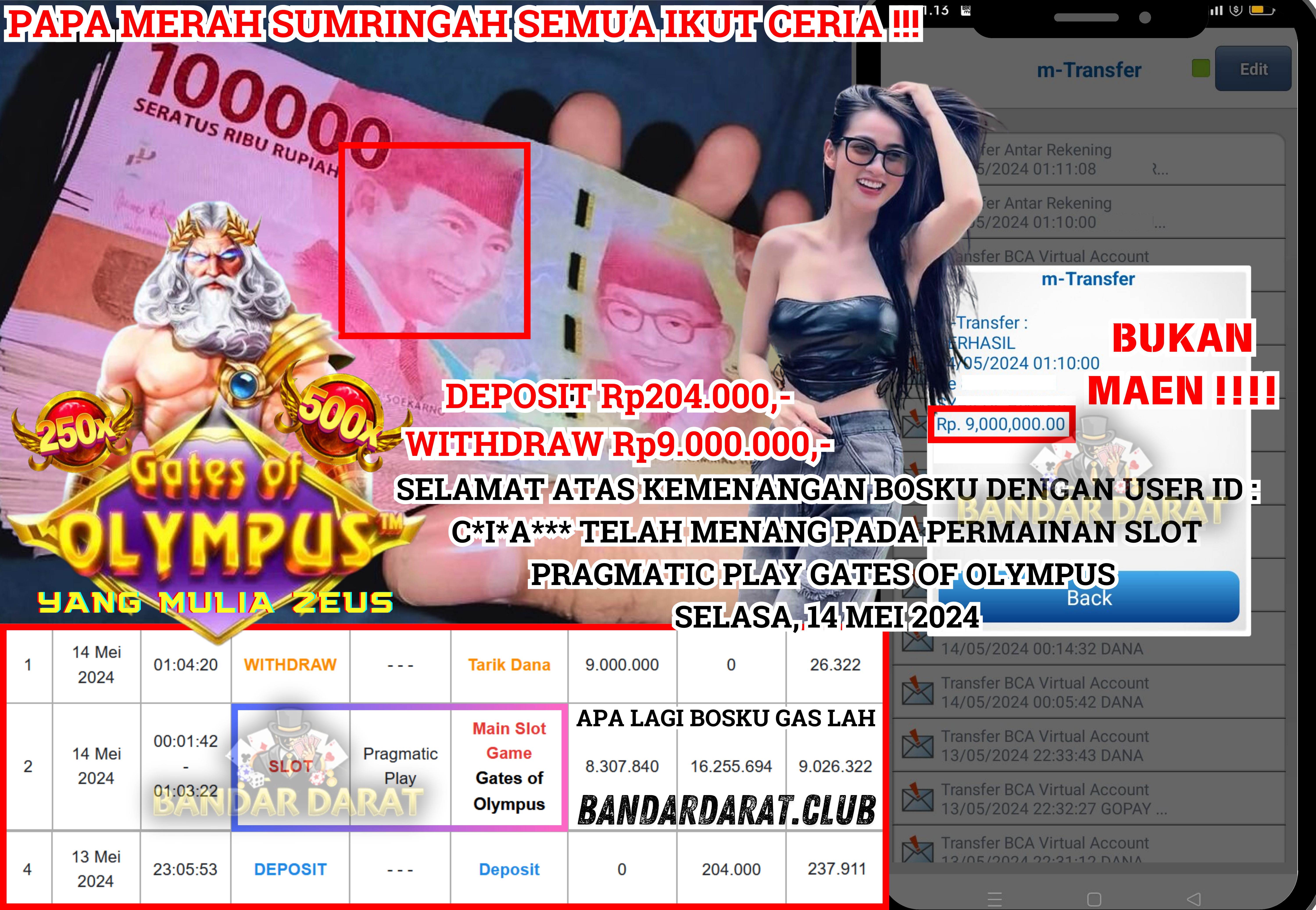 ​​SELAMAT ATAS KEMENANGAN BOSKU DENGAN USER ID : C*I*A*** TELAH MENANG PADA PERMAINAN SLOT PRAGMATIC PLAY GATES OF OLYMPUS SELASA, 14 MEI 2024