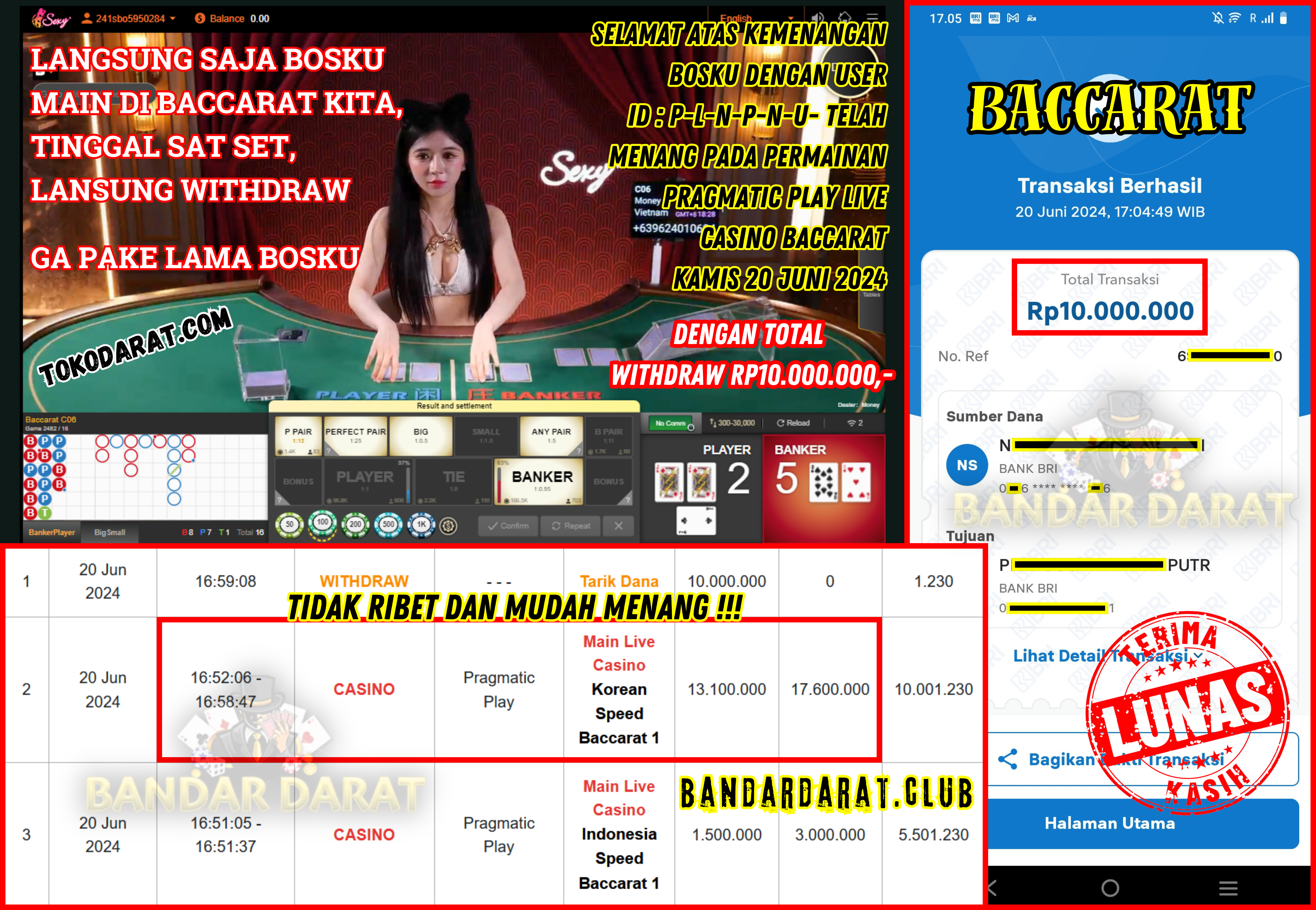 ​​SELAMAT ATAS KEMENANGAN BOSKU DENGAN USER ID : P-L-N-P-N-U- TELAH MENANG PADA PERMAINAN PRAGMATIC PLAY LIVE CASINO BACCARAT KAMIS 20 JUNI 2024