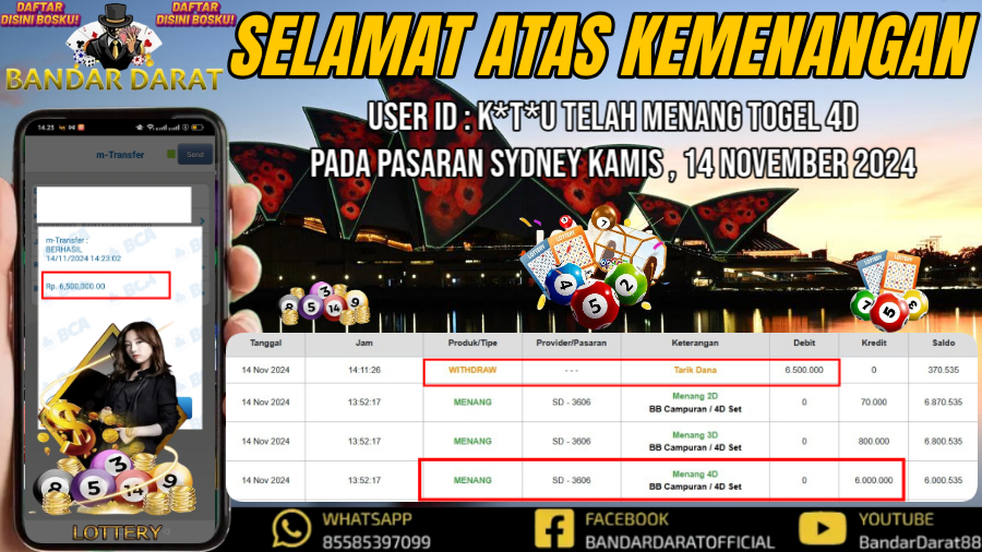 SELAMAT ATAS KEMENANGAN USER ID : K*T*U TELAH MENANG TOGEL 4D PADA PASARAN SYDNEY KAMIS , 14 NOVEMBER 2024