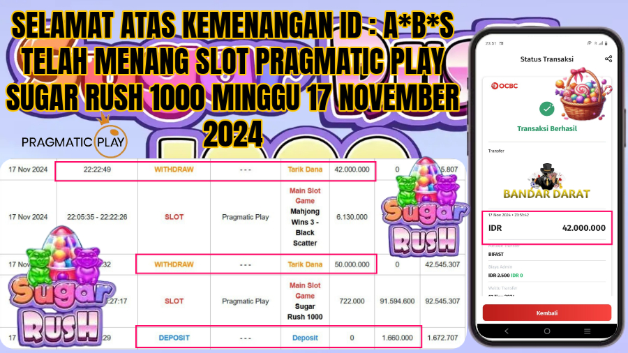 SELAMAT ATAS KEMENANGAN ID : A*B*S TELAH MENANG SLOT PRAGMATIC PLAY SUGAR RUSH 1000 MINGGU 17 NOVEMBER 2024