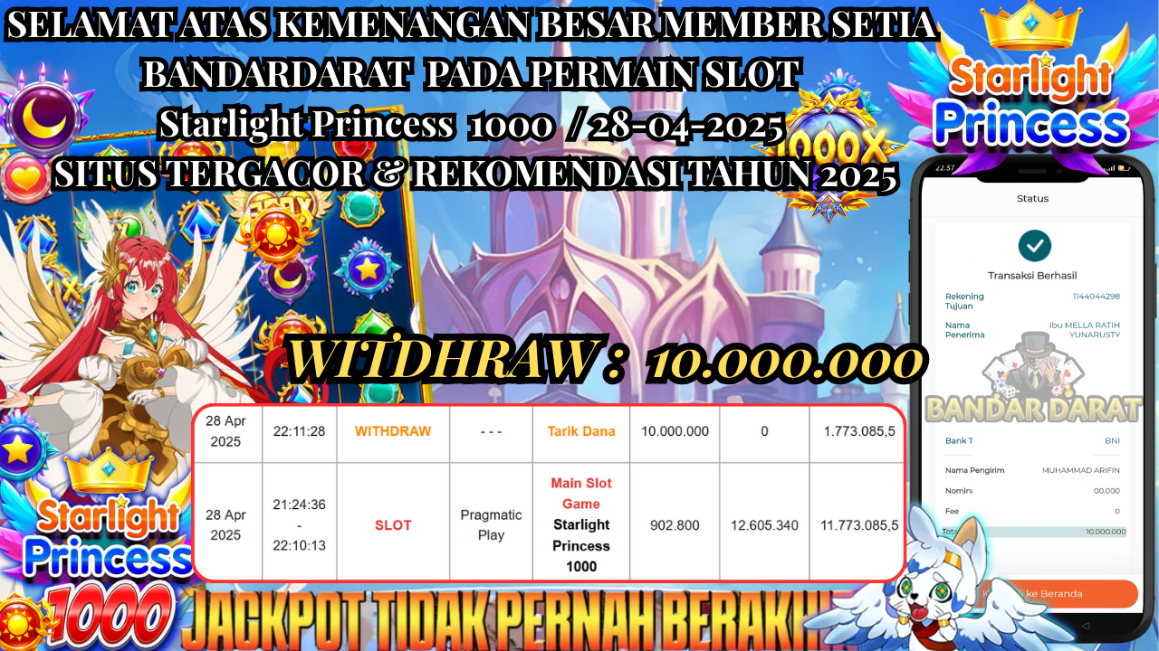 SELAMAT ATAS KEMENANGAN BESAR MEMBER SETIA BANDAR DARAT PADA STARLIGHT PRINCESS 1000 tanggal 28-04-2025 SITUS TERGACOR & REKOMENDASI TAHUN 2025