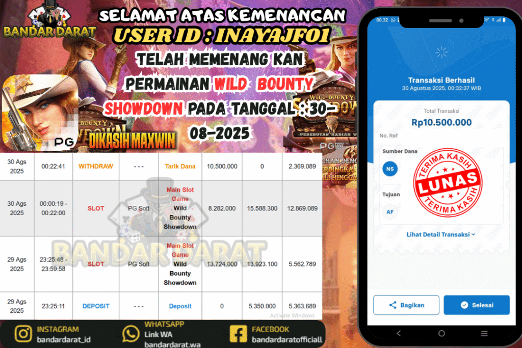 BUKTI PEMBAYARAN YANG SUDAH DI TRANSFER KE REKENING MEMBER DENGAN SUKSES SERTA BUKTI BETTINGANNYA