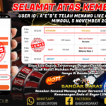 SELAMAT ATAS KEMENANGAN USER ID : M*M*E** TELAH MENANG DI PROVIDER SBOBET GAME SPORTSBOOK SENIN, 6 NOVEMBER 2023